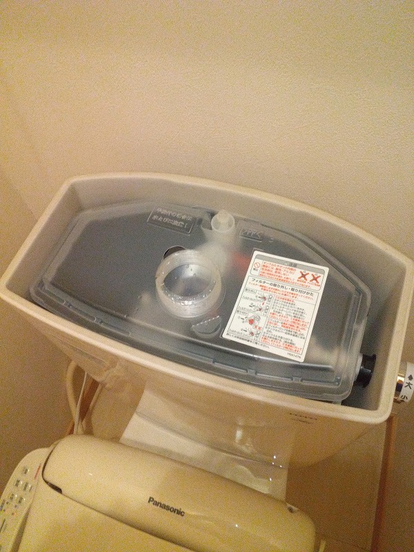 ダイヤフラム式と呼ばれるトイレタンクの中に機能部品一式が入った樹脂タンクがマトリョーシカのように取付してあるタイプです。