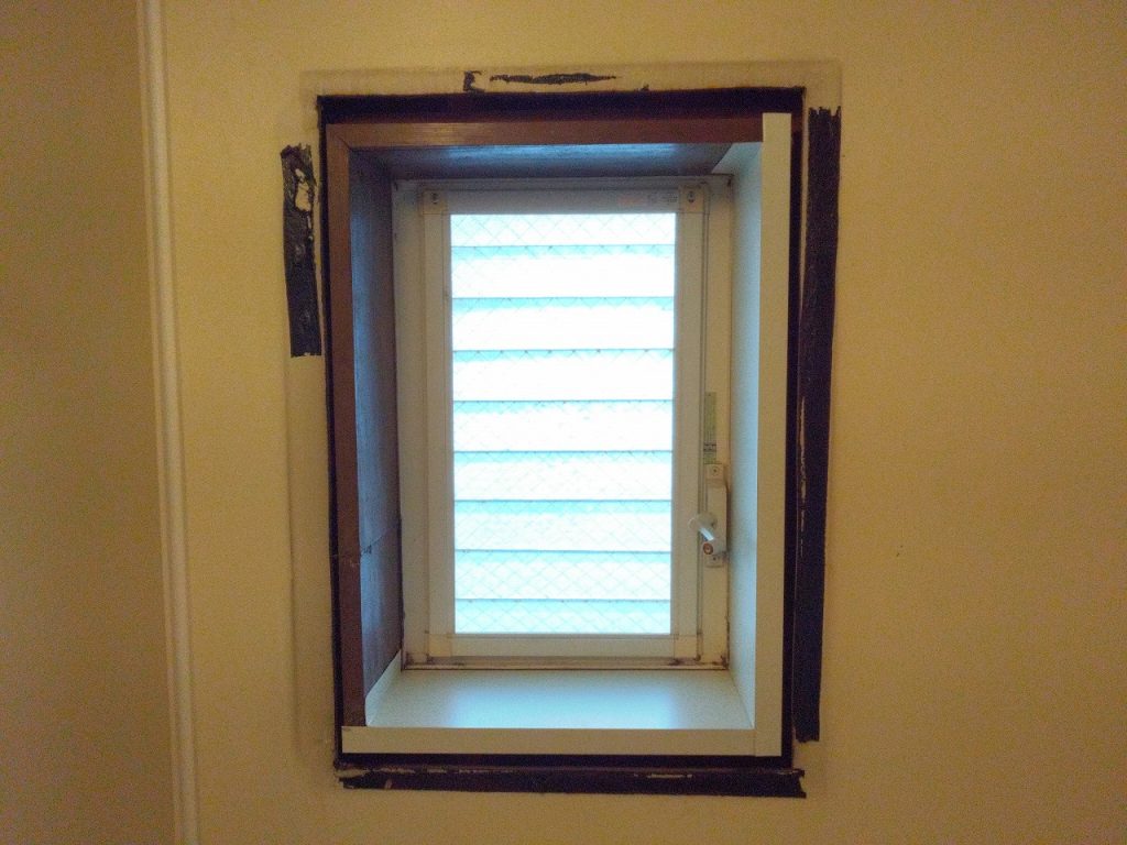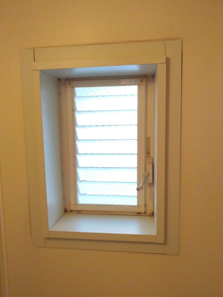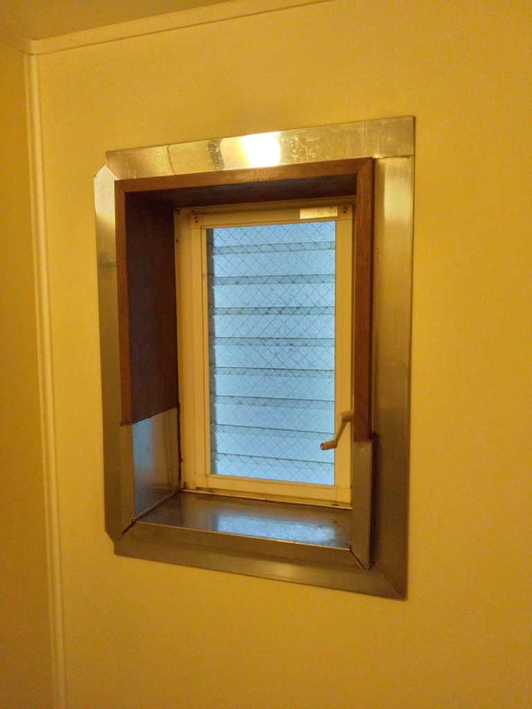 浴室窓枠を綺麗に収めるために板金工事の施工をしました