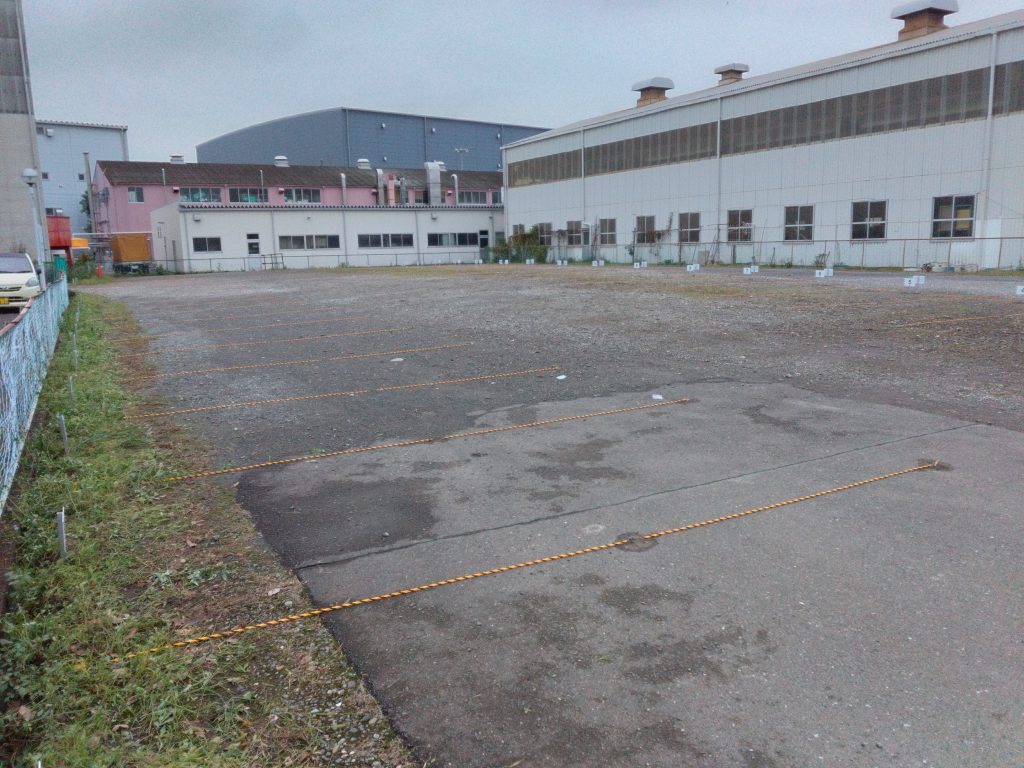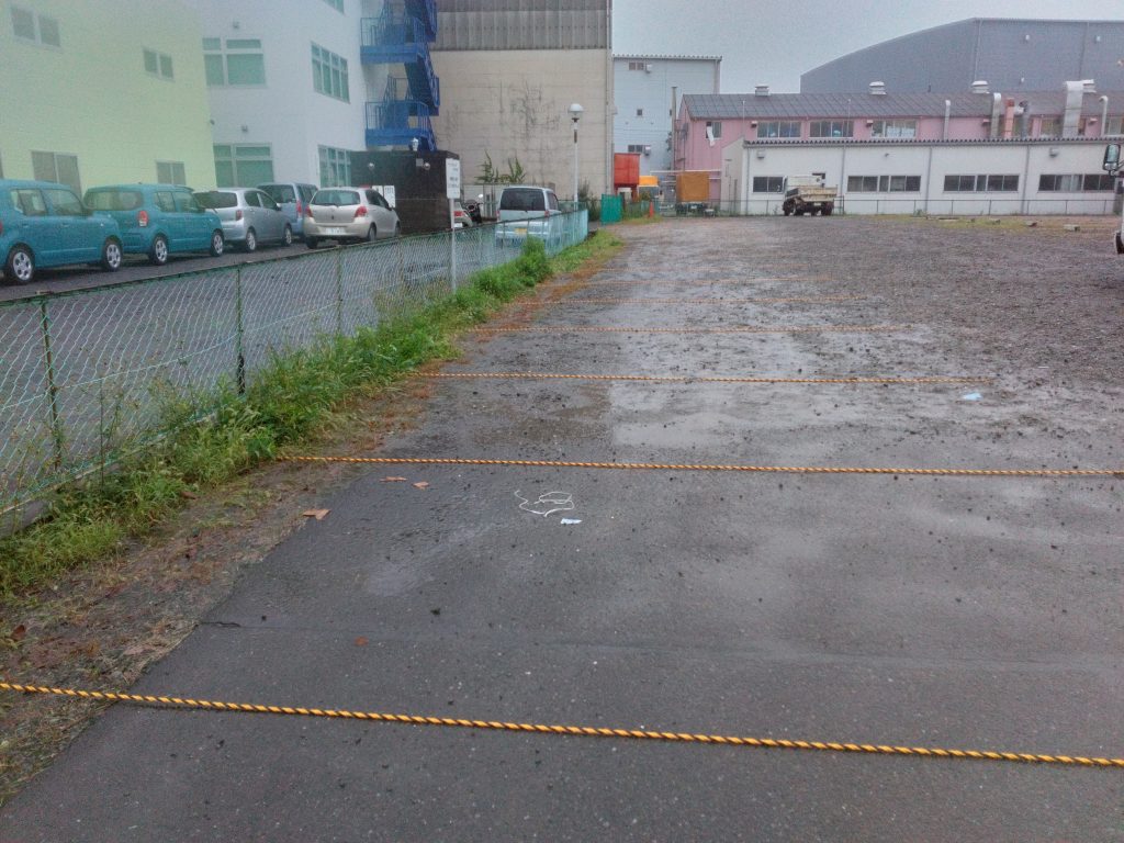 大型駐車場の駐車位置変更に伴うトラロープ張り工事のご依頼を承りました。