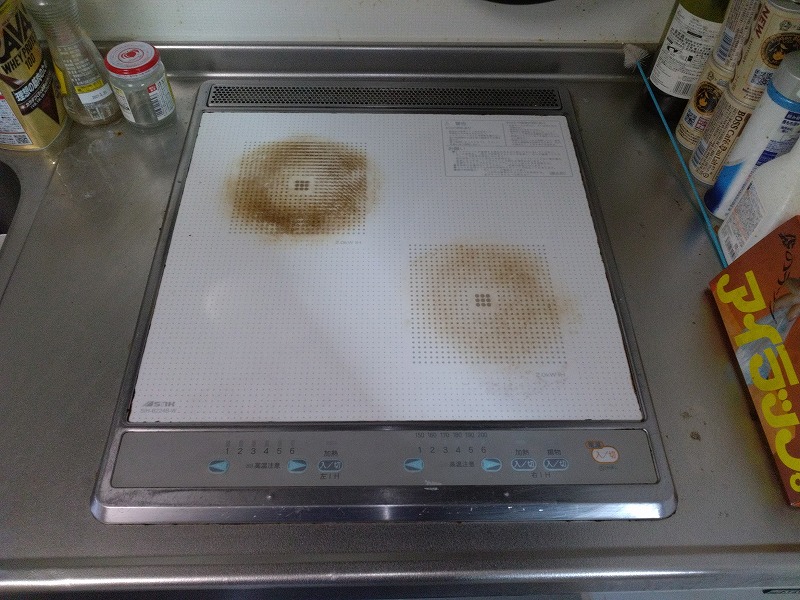 ビルドイン式の2口IHクッキングヒーターです。電源がまったく入らなくなってしまったとのことで、新築当時から使用し13年は経過しているものだそうです。